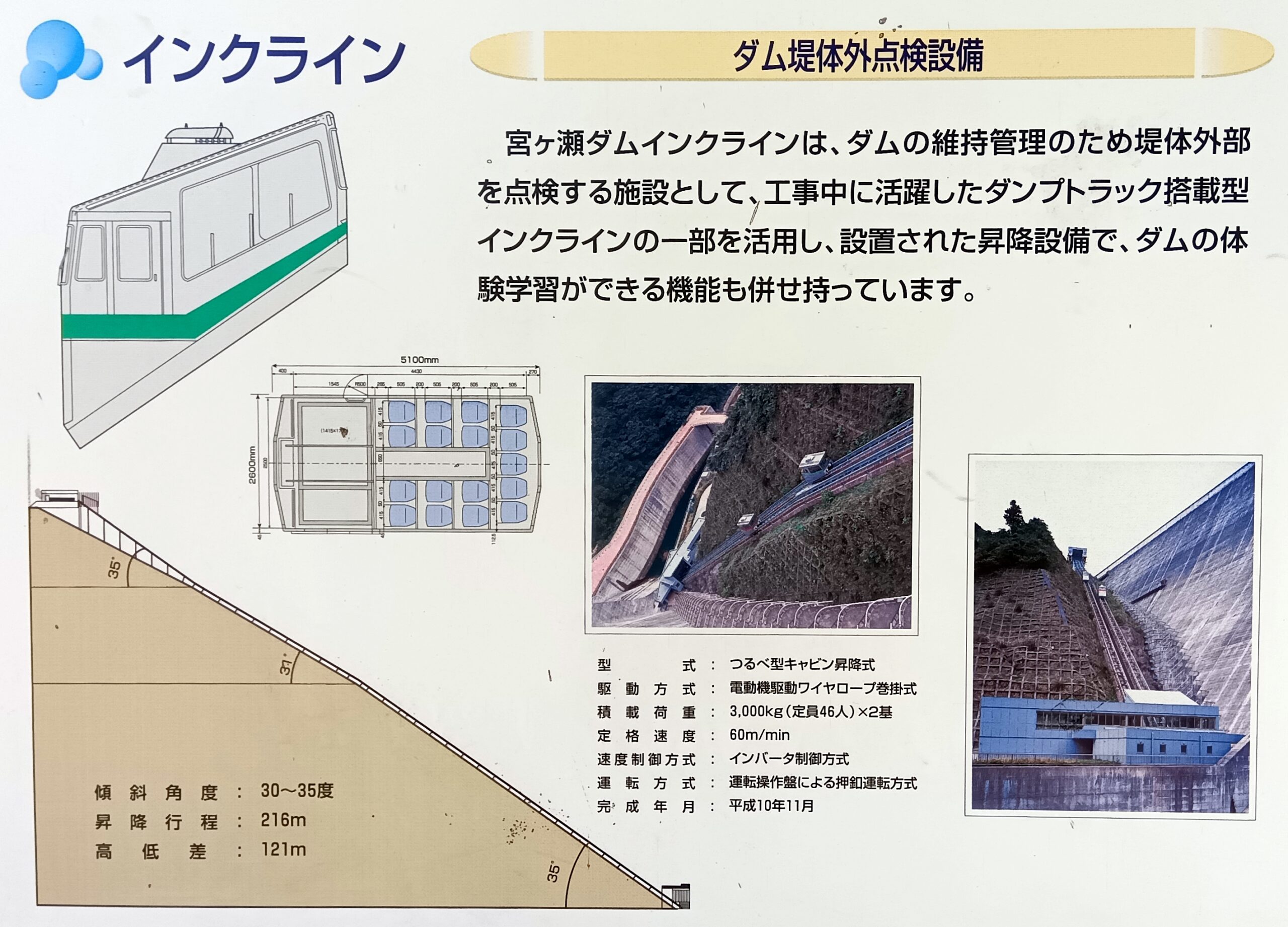 観光用インクラインの寸法や定格が記載されているパネルがありました(前回の記事はこちら).