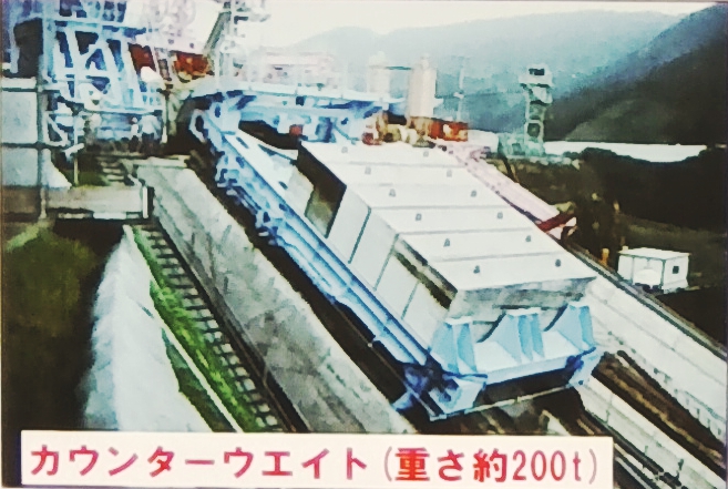 これは工事用インクラインのカウンターウェイト走行路を残したものと思われます.以下は「宮ヶ瀬水とエネルギー館」の展示パネルの写真です.