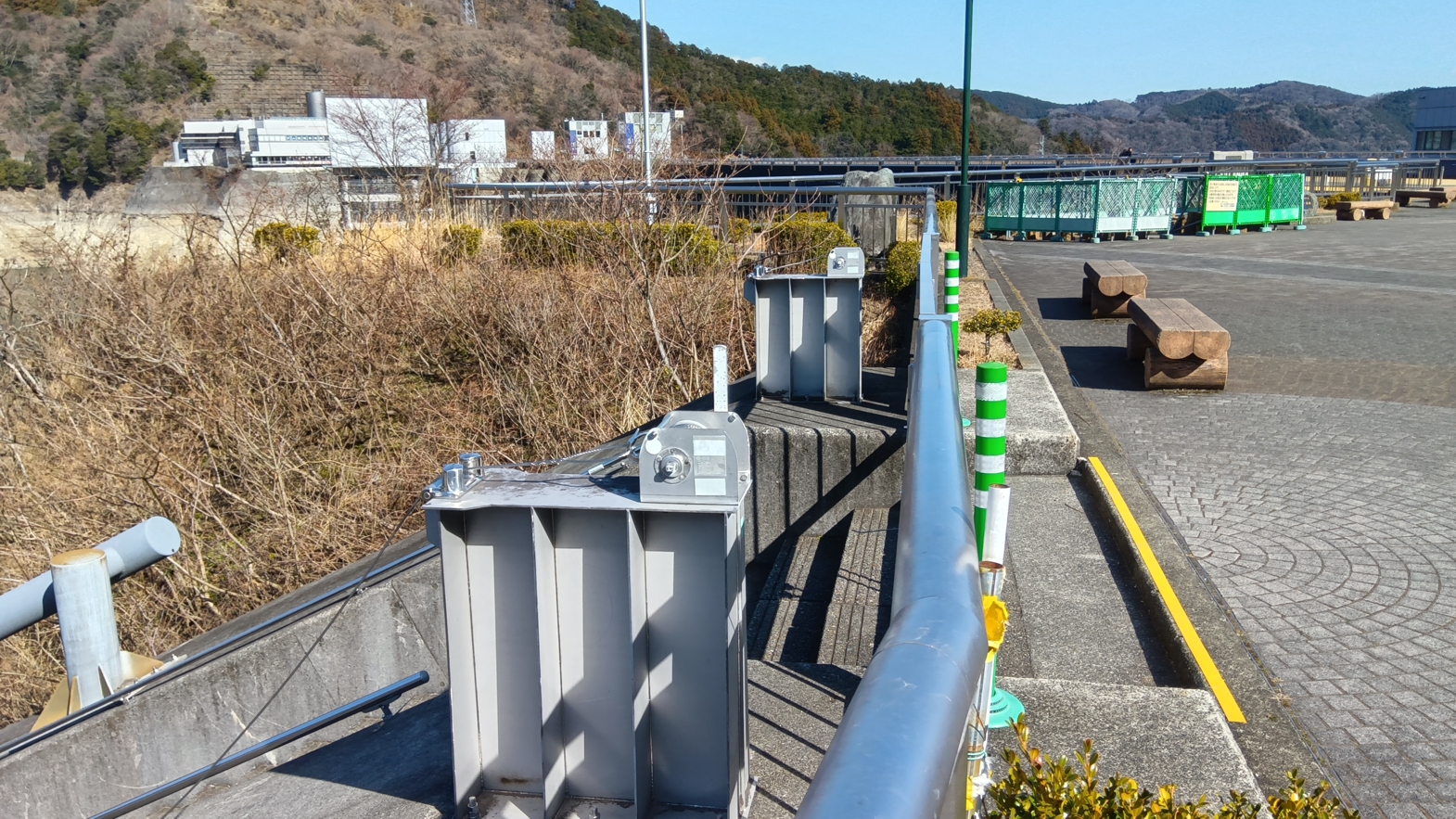 乗船場よりさらに堤体に近づくと,今度は真直ぐなスロープが現れます.しっかりした構造物で,鉄製プレートも綺麗に埋め込まれています.