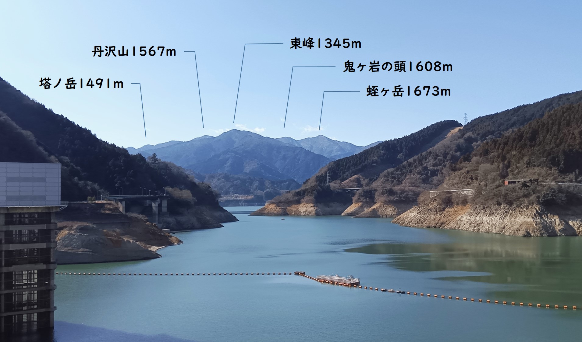 久々に訪問した宮ヶ瀬湖は渇水がひどい状態で貯水率44%.上流部では湖底が見えるところもありました.(2026/1/30訪問)